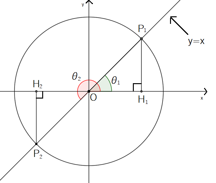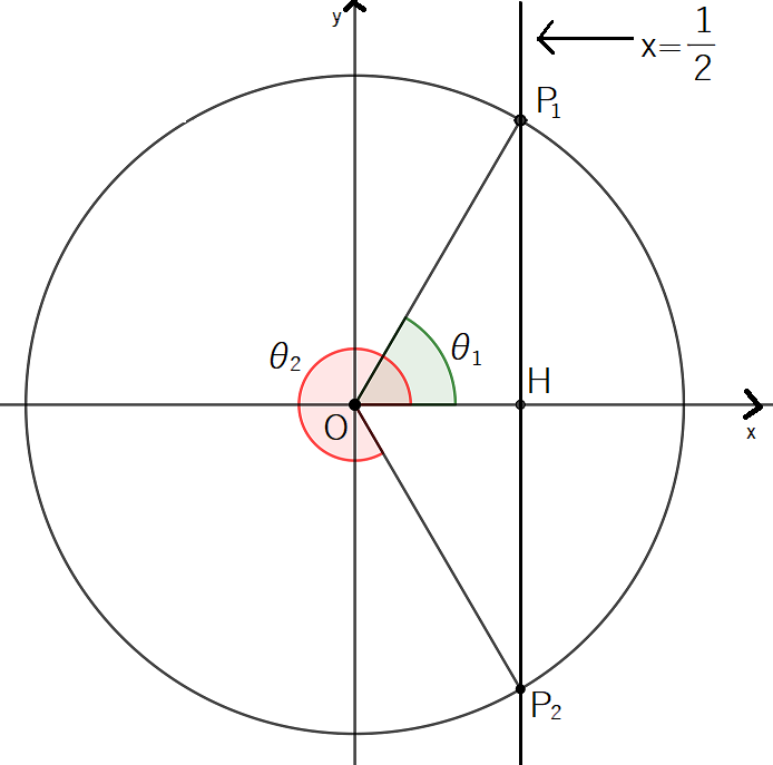 ということは,次の図のような位置の角 を求めることになります。